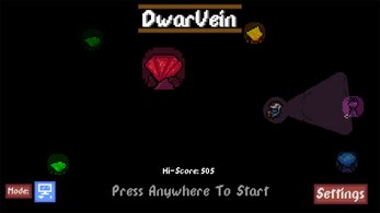 Welcome to DwarVein, a world where you a trusty dwarf venture forth into inhabited caves on the search for valuable Gems. Careful though, there are creatures lurking in the dark abyss. Using your trusty flashlight, and pickaxe you uncover treasures on each of your runs to aid you!